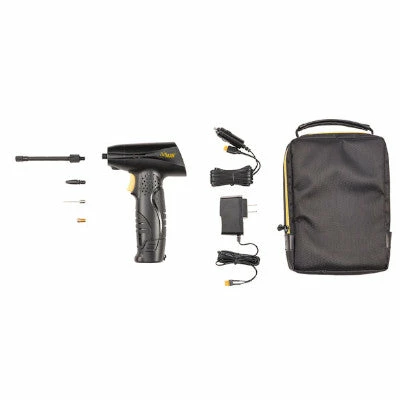Le gonfleur sans fil Airgun se recharge via une batterie Lithium-Ion à brancher sur une prise secteur ou sur un allume-cigare, avec adaptateur 12V fourni (cable de 3.4 m). Le câble de chargement mesure 3.4 mètres. Un tuyau à pression avec connecteur fileté facilite l’accès aux valves. Tous ces accessoires sont inclus dans une mallette. Une lampe LED est intégrée pour vous aider à gonfler votre pneu même si la nuit est tombée.