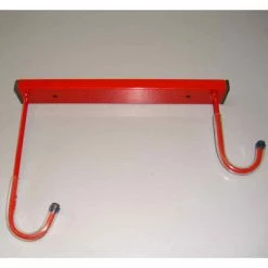 Cette fixation de vélo au plafond maintient deux vélos par la roue avant via deux crochets. Pour protéger la jante, ces crochets sont recouverts d’une protection en plastique. Pour éviter que les guidons ne se gênent, les deux crochets sont positionnés à des hauteurs de 14 et 25 cm.