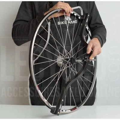 Très pratique lors du montage de la roue ou du remplacement d’un rayon, cet outil permet de s’assurer qu’une roue est correctement rayonnée ou qu’elle n’est pas voilée et, plus largement, à repérer rapidement tout défaut d’alignement entre les différents composants de la roue : le moyeu et la jante de part et d’autre. Ce comparateur d’alignement peut s’utiliser sur la plupart des roues de 20 à 29 pouces. Il est muni de butées sur jante et sur moyeu réglables pour une meilleure adaptation à la roue.