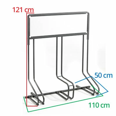 Le garage vélo Andrys 3 places est idéal à placer devant une devanture de magasin, association, commerce ou entreprise pour y ranger une flotte de vélos ou pour offrir un espace d’accueil aux cycles de leurs salariés et/ou de leurs visiteurs. En effet, ce parking vélo amovible pour mobilier urbain 3 places dispose d’une pancarte blanche en PVC neutre au-dessus qui permet de mettre le nom d’une enseigne ou d’écrire un message publicitaire.