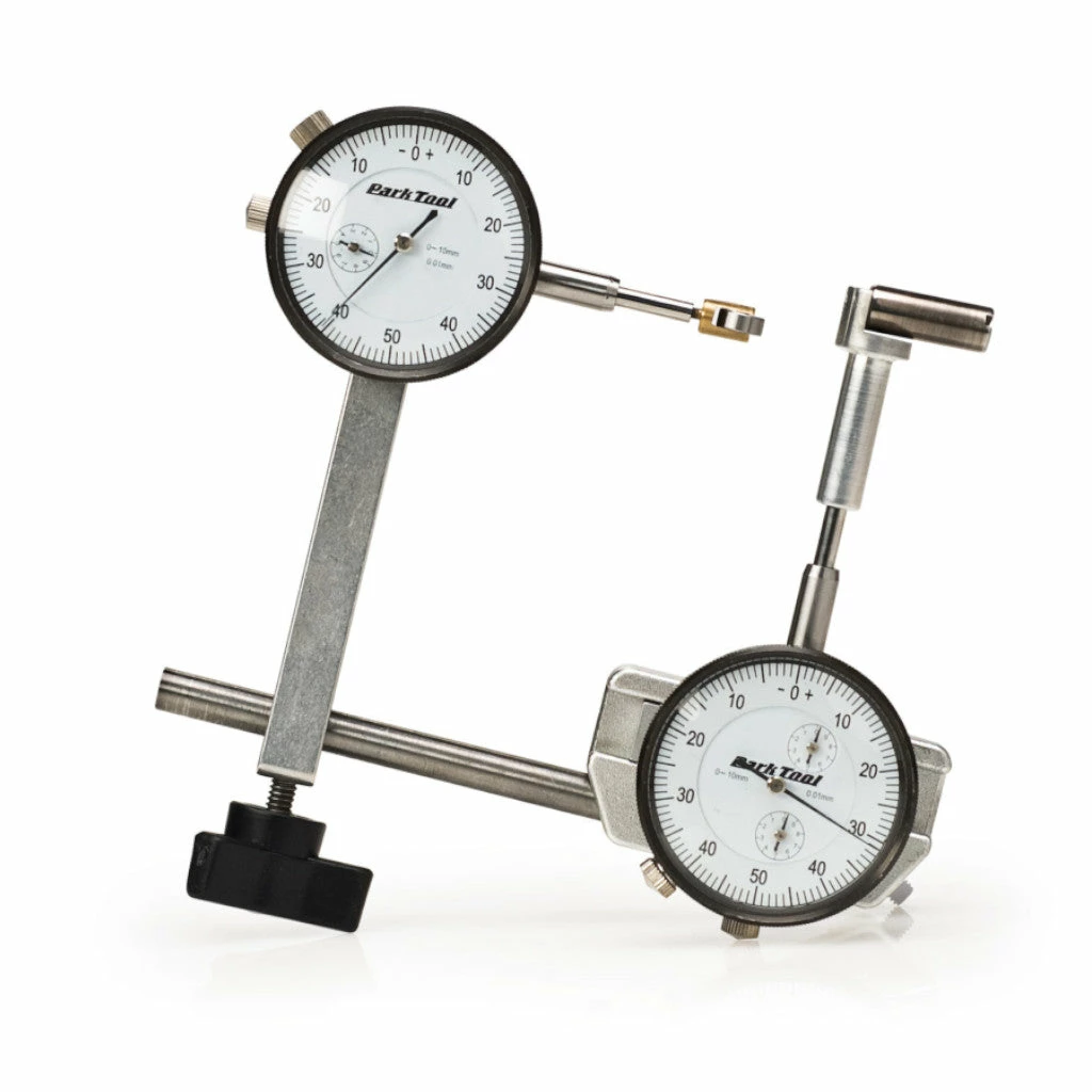 L’embout non marquant spécialement conçu de chaque indicateur se place sur le flanc ou le bord extérieur de la jante et mesure des écarts aussi petits que 0,01 mm, en affichant la mesure sur des jauges faciles à lire. Les marqueurs de plage réglables vous permettent de définir votre plage de tolérance idéale et de visualiser exactement la distance qui vous sépare de la perfection. Cet outil se démonte facilement pour être rangé dans la boîte à outils. Parfait pour les courses ou pour un atelier amateur. Pour mesurer rapidement et avec précision le centrage de tous types de roues, démontées ou encore sur le vélo, utilisez l’outil professionnel pour vérifier le centrage des roues WAG-4 ParkTool.