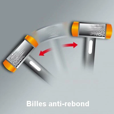 Il est anti-rebond grâce à des petites billes situées dans la tête, elles auront également pour effet de limiter la propogation des vibrations dans le manche et garantir un maximum de confort. Il peut par exemple servir à retirer des cuvettes de direction ou à désolidariser des pièces grippées entre elle. Comme, par exemple, le pivot de direction avant une découpe de fourche carbone.